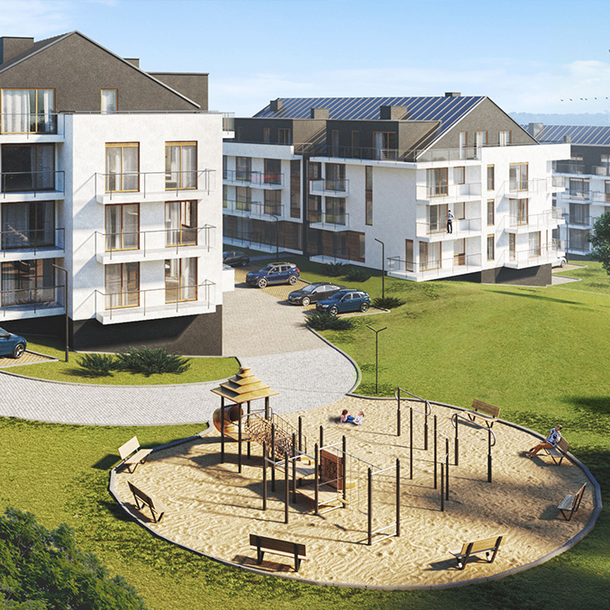 Przedstawione na niniejszej stronie wizualizacje maja charakter pogladowy i stanowia wylacznie material pomocniczy ulatwiajacy przyszlym nabywcom mieszkan zorientowanie sie w ogolnym wygladzie realizowanego Przedsiewziecia Deweloperskiego. Przedstawione wizualizacje nie stanowia oferty w rozumieniu ustawy z dnia 23 kwietnia 1964 r. Kodeks cywilny (Dz. U. z 2014 r., poz. 121; ze zm.).